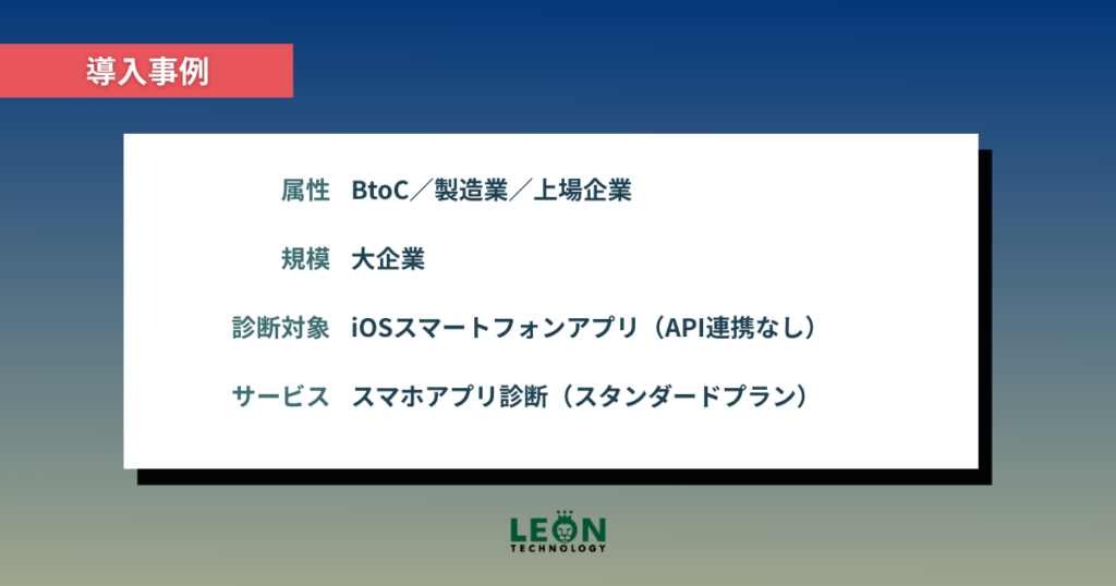 【導入事例】BtoC/製造業/上場企業/大企業/スマホアプリ診断(iOS)
