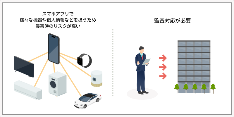 ・スマホアプリでユーザーのIoT機器の制御ができるため、乗っ取りが発生した場合の物理的なリスクが大きい.