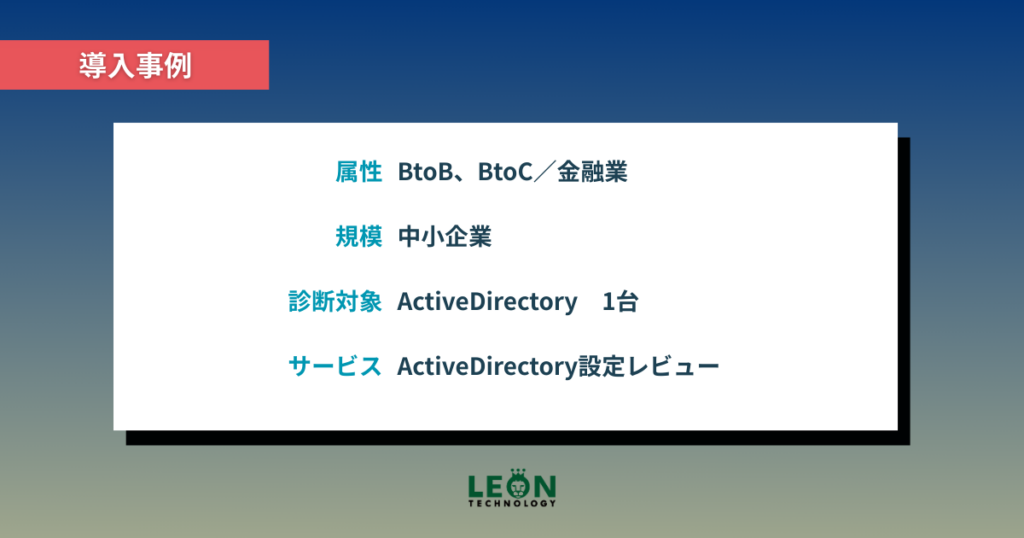 【導入事例】BtoB、BtoC/金融業/中小企業/ActiveDirectory(OS設定セキュリティレビュー)