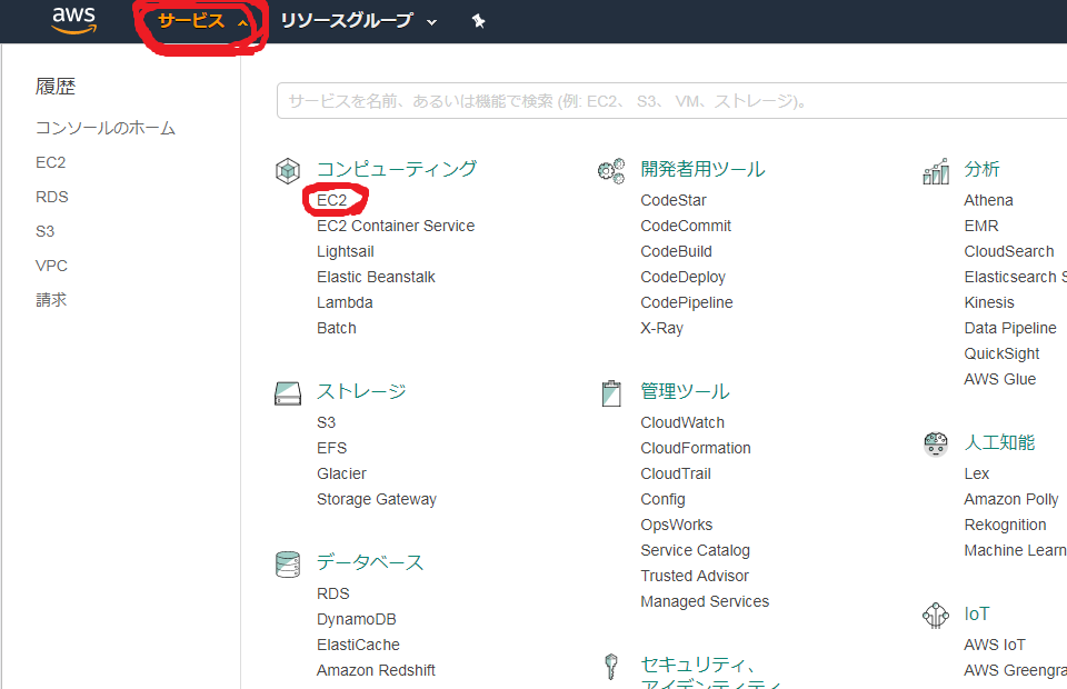「EC2 ダッシュボード」のページに移動したら、右上のリージョンが「東京」になっているのを確認し、真ん中の「インスタンスの作成」をクリック。