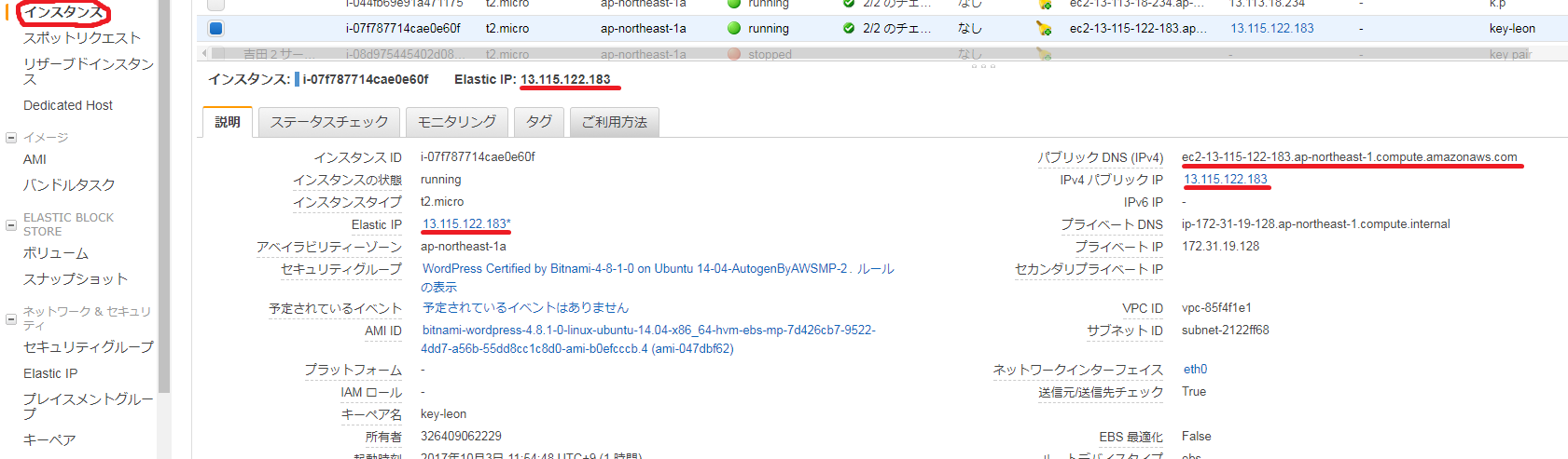 ちゃんとIPが固定されたかをIPv4パブリック と、パブリックDNSからサイトを表示できるかURLを入力して確認してください。