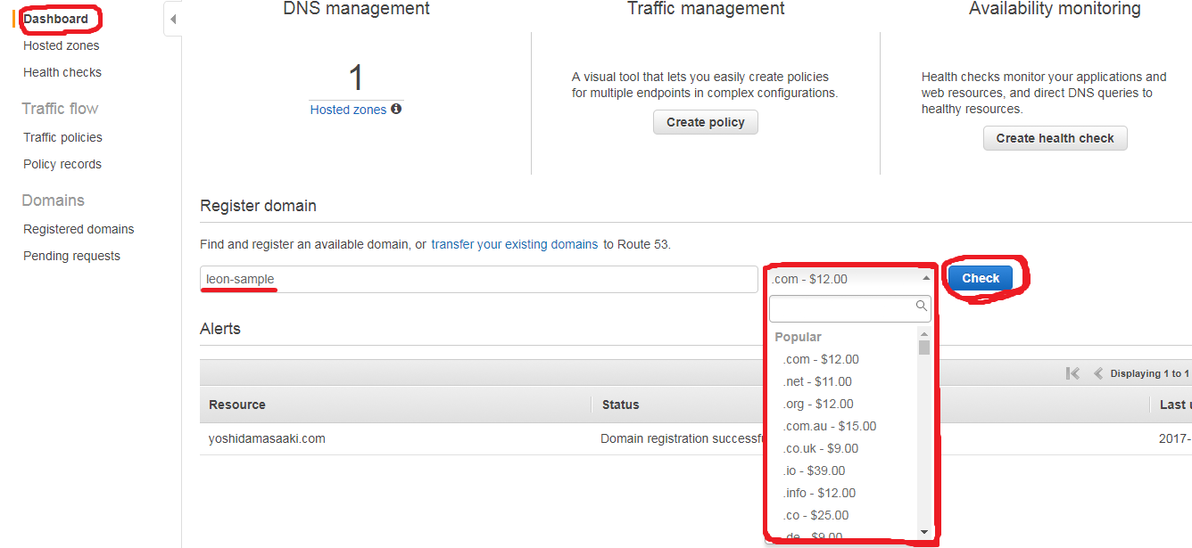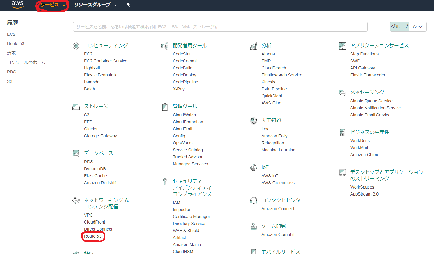 左上の「サービス」からネットワーキング&コンテンツ配信の「Route 53」を選択。