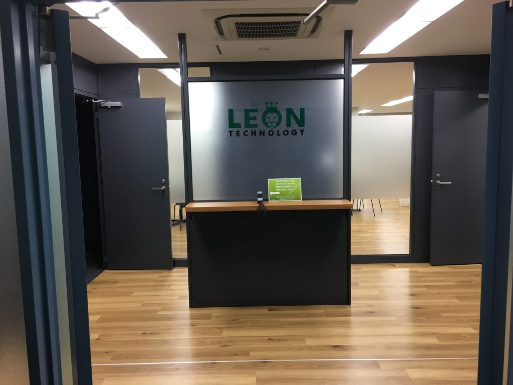エレベーターで3階に降りますと、レオンテクノロジーのロゴが見えます。