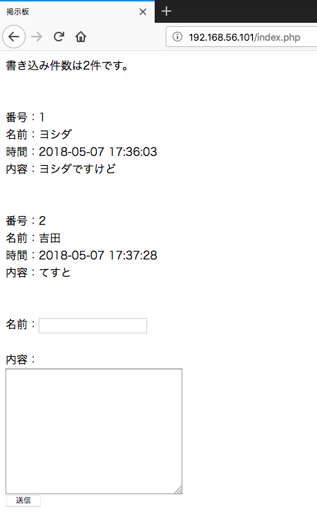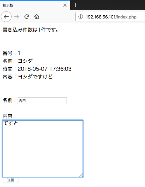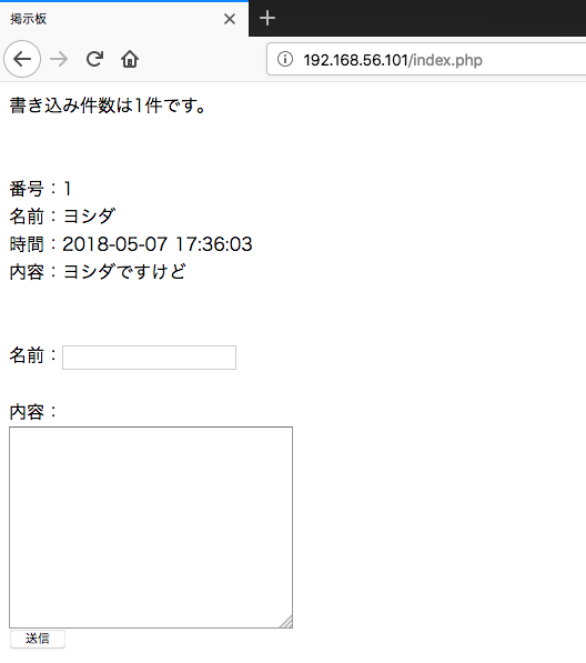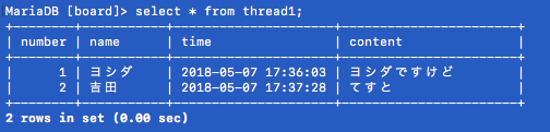 ちゃんとデータベース(MariaDB)にも書き込まれています。