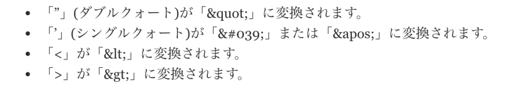 これをしないと、クロスサイトスクリプティング(XSS)が行えちゃいますから、システムに色々問題が発生してしまいます。